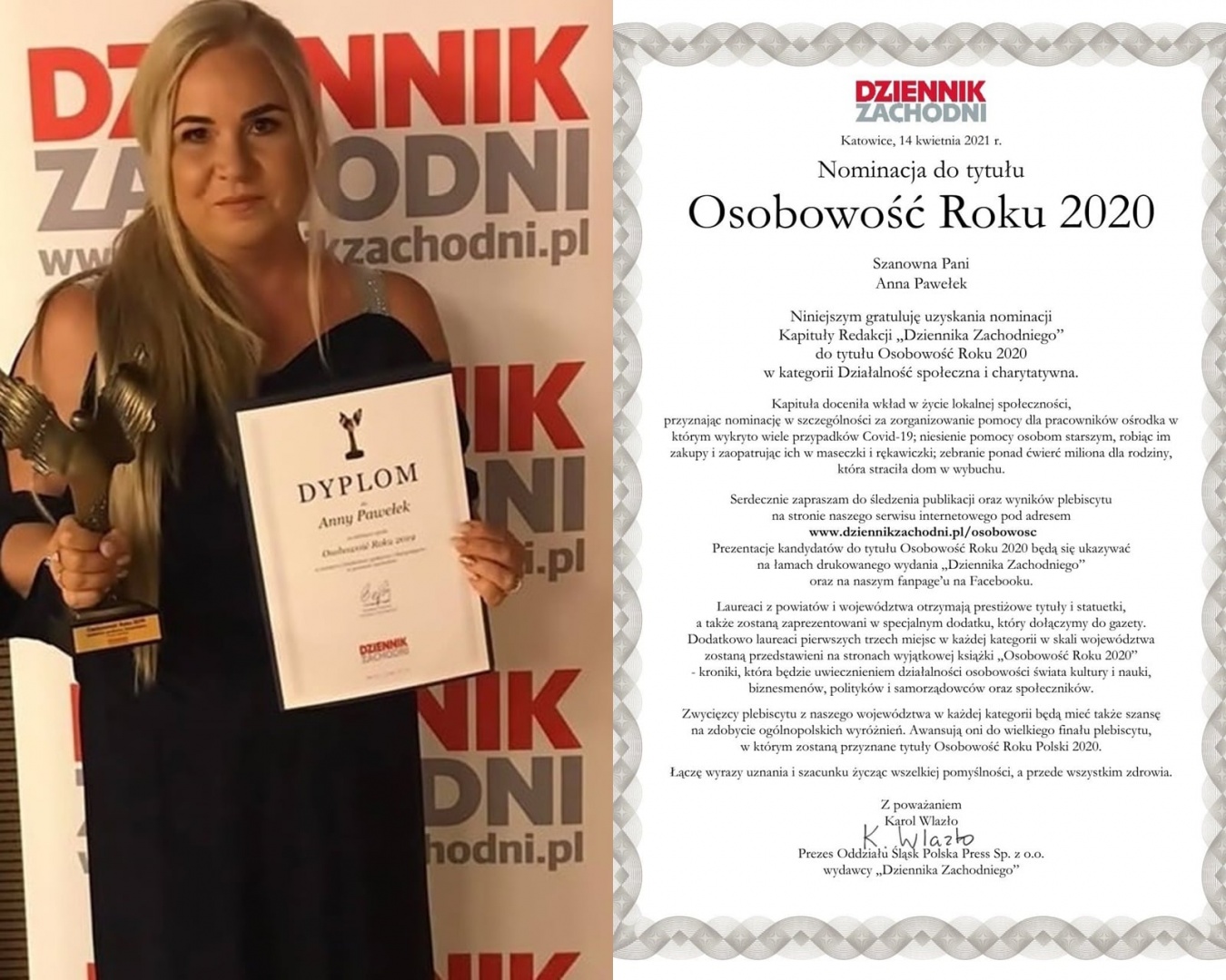 Od kilku lat, z głową pełną pomysłów dąży do poprawy bytu najbardziej potrzebujących w rejonie gmin Czernichów, Porąbka oraz okolicznych miejscowości. Tak o Liderce mówią wolontariusze, którzy z nią współpracują. Wie, że dobro zawsze wraca! Dwukrotnie nominowana do plebiscytu "Dziennika Zachodniego" w roku 2019 otrzymała statuetkę Osobowość Roku w kategorii Działalność Społeczna i Charytatywna w powiecie żywieckim. Prywatnie szczęśliwa mama i babcia.